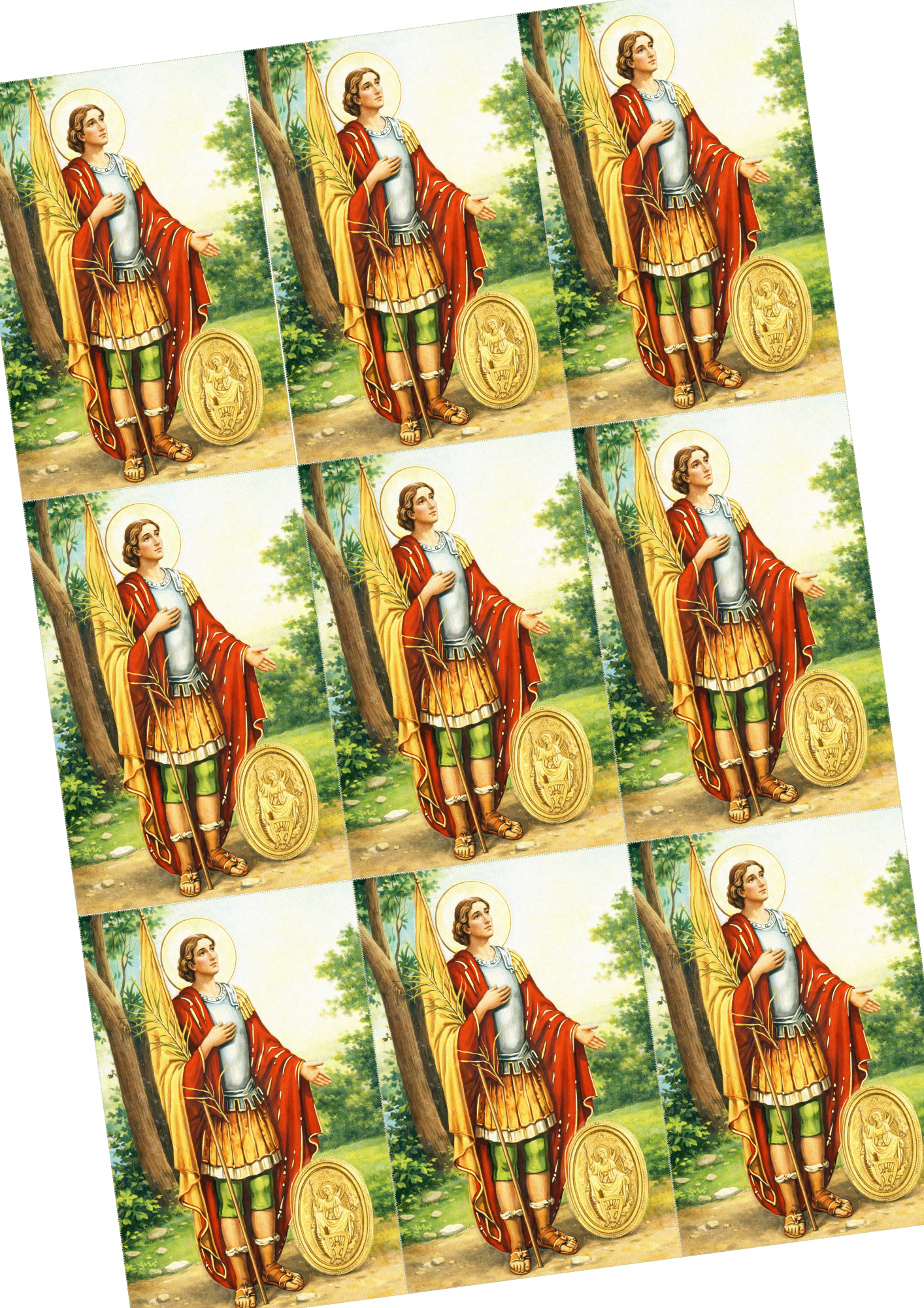 Archivo digital en formato PDF con estampitas de San Pancracio, listas para imprimir. Cada estampita incluye la imagen en el frente y la oración en el reverso, ideal para catequesis, evangelización, parroquias o devoción personal.