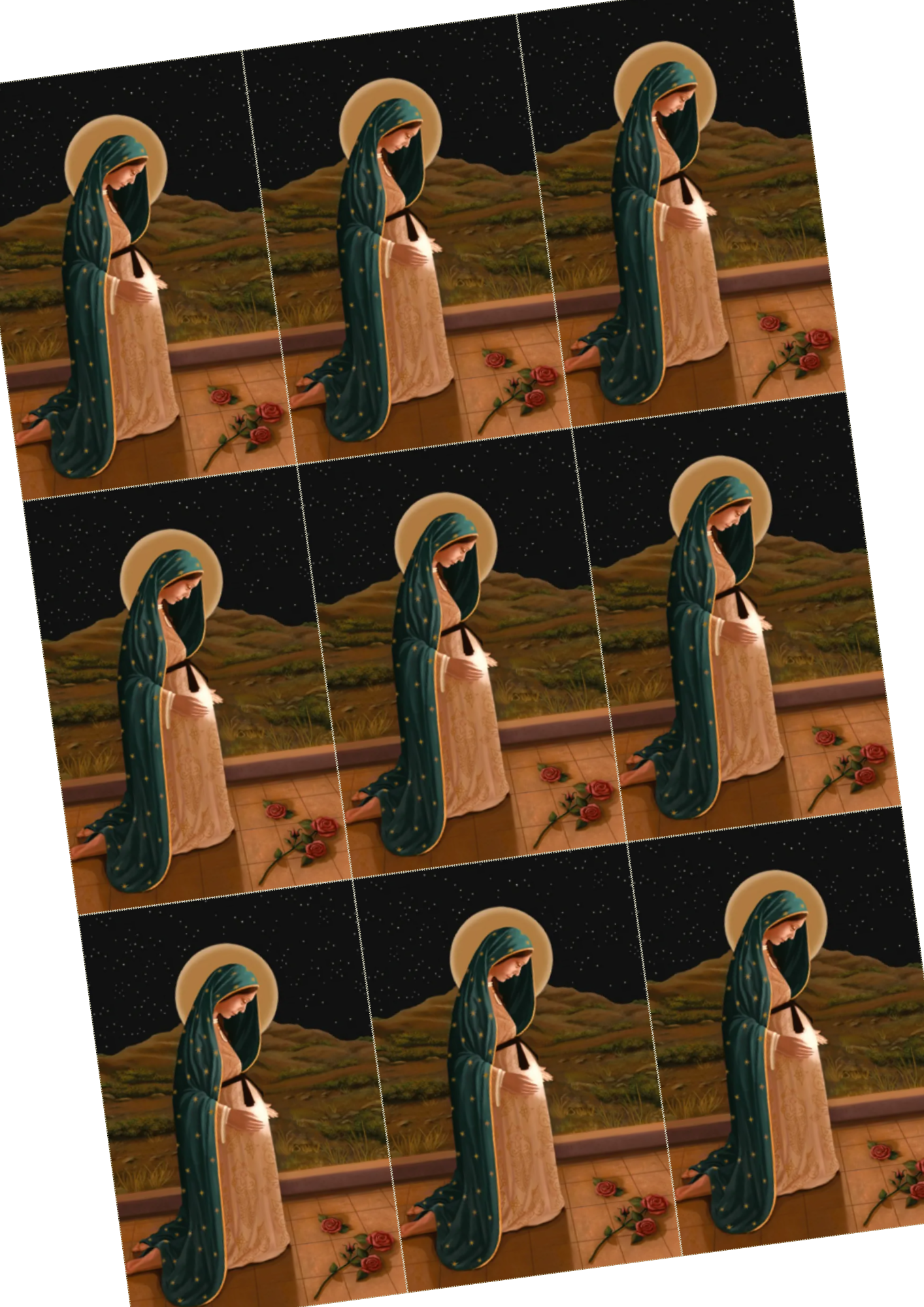 Archivo digital en formato PDF con estampitas de Virgen de la Dulce Espera, listas para imprimir. Cada estampita incluye la imagen en el frente y la oración en el reverso, ideal para catequesis, evangelización, parroquias o devoción personal.